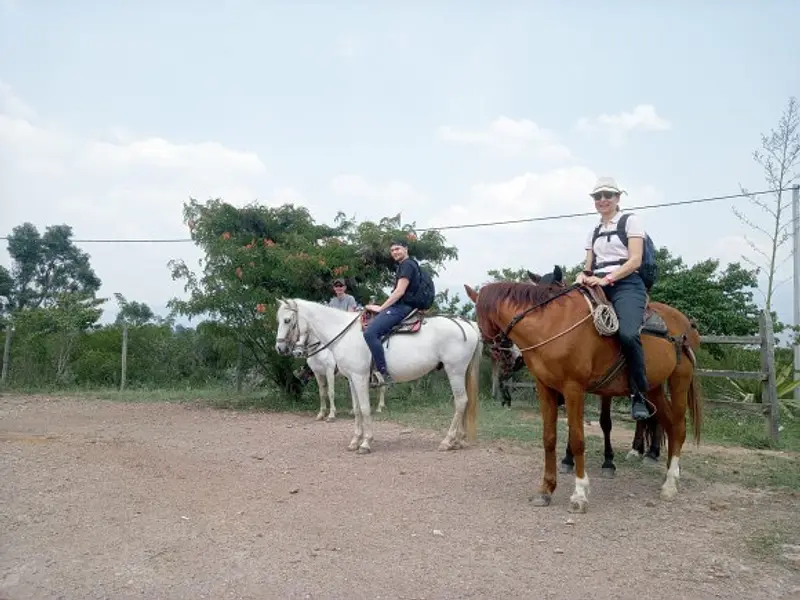 El recorrido inicia desde el hotel del visitante, salen en vehículo hasta el punto donde se encuentran los caballos, de ahi siguen en caballo por via destapada disfrutando de diferentes paisajes semideserticos hasta llegar a un mirador llamado la piedra del elefante