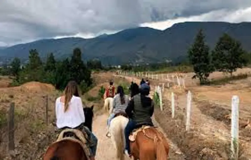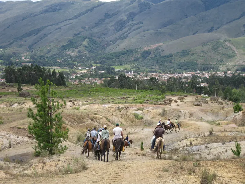 El recorrido en el caballo inicia a 2km de Villa de Leyva y va por diferentes zonas semideserticas llegando hasta un mirador con vista hacia el pueblo y las montañas